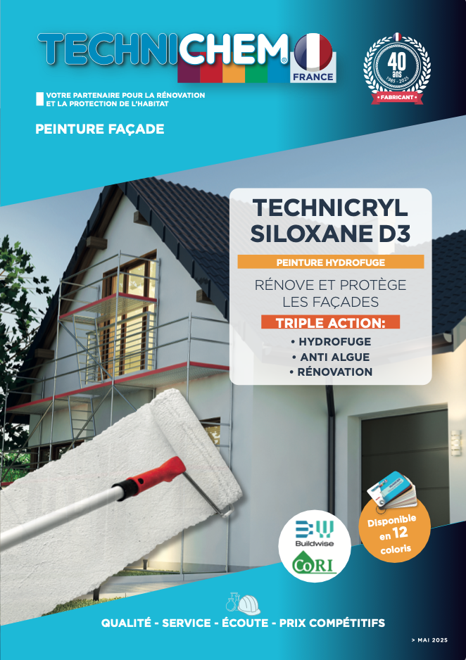 Peinture hydrofuge façade. Triple action. 12 coloris façade.