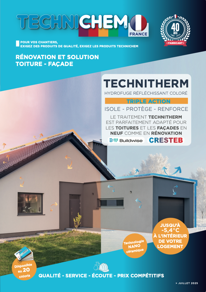 Hydrofuge réfléchissant coloré. Effet Cool Roof. 12 coloris façade.