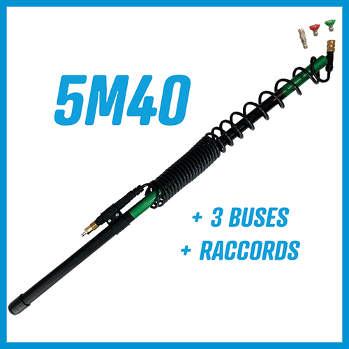 Allonge téléscopique basse pression . 5m40. Raccord rapide. 3 buses (jet plat, jet droit et jet brouillard).