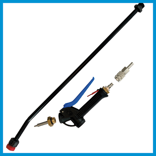 Pistolet PVC basse pression avec allonge de 60 cm. Embout à injecter. Buse pour pulvériser.
